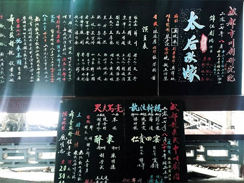 进门就能看到门廊上的黑板戏牌,写着最近要上演的剧目和时间。戏牌就是一出戏最好的名片。