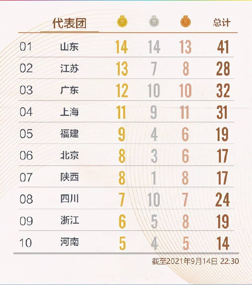 全运会金牌榜: