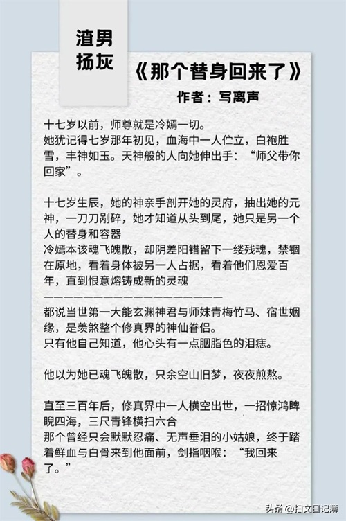8.《那个替身回来了》作者:写离声