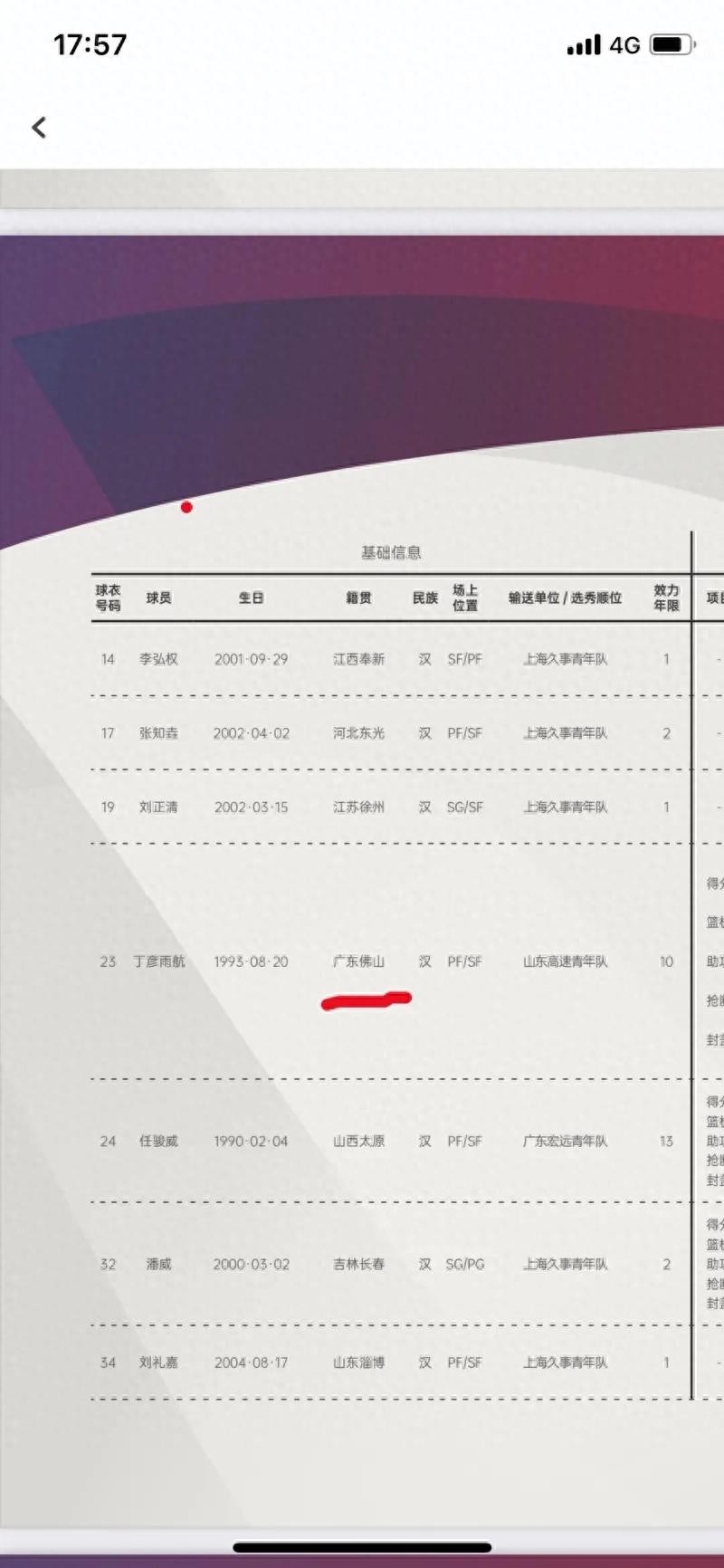 近日,有细心的网友在阅览CBA官方发布的现各俱乐部球员白皮书信息时,震惊的看到现效力于上海男篮的知名国手丁彦雨航的籍贯显示广东佛山!对于这个发现,不少广东籍的球迷表示很震惊,因为之前从未听说丁彦雨航祖籍佛山啊,他不是新疆出生长大的吗?