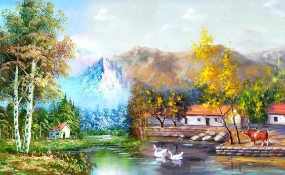 本词出自宋代词人黄庭坚的笔下,词人描写了傍晚站在快亭上观看风景,只见落木萧萧,起伏连绵的秋山伸向远方的场景,浩瀚的天空在此时也显得更加空旷辽远;澄净如天的江水如一道白带,一弯新月映照在江水中,交相辉映。