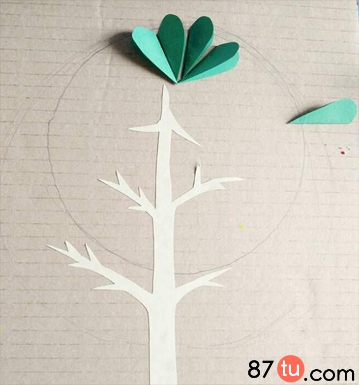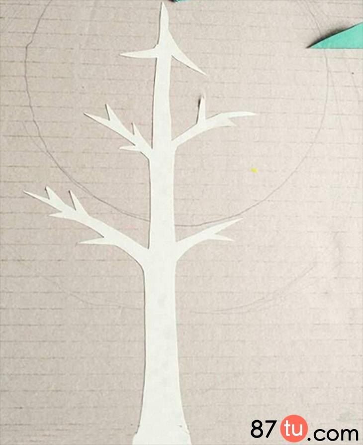 第1步:剪一颗大树贴到纸板上,随意剪即可。