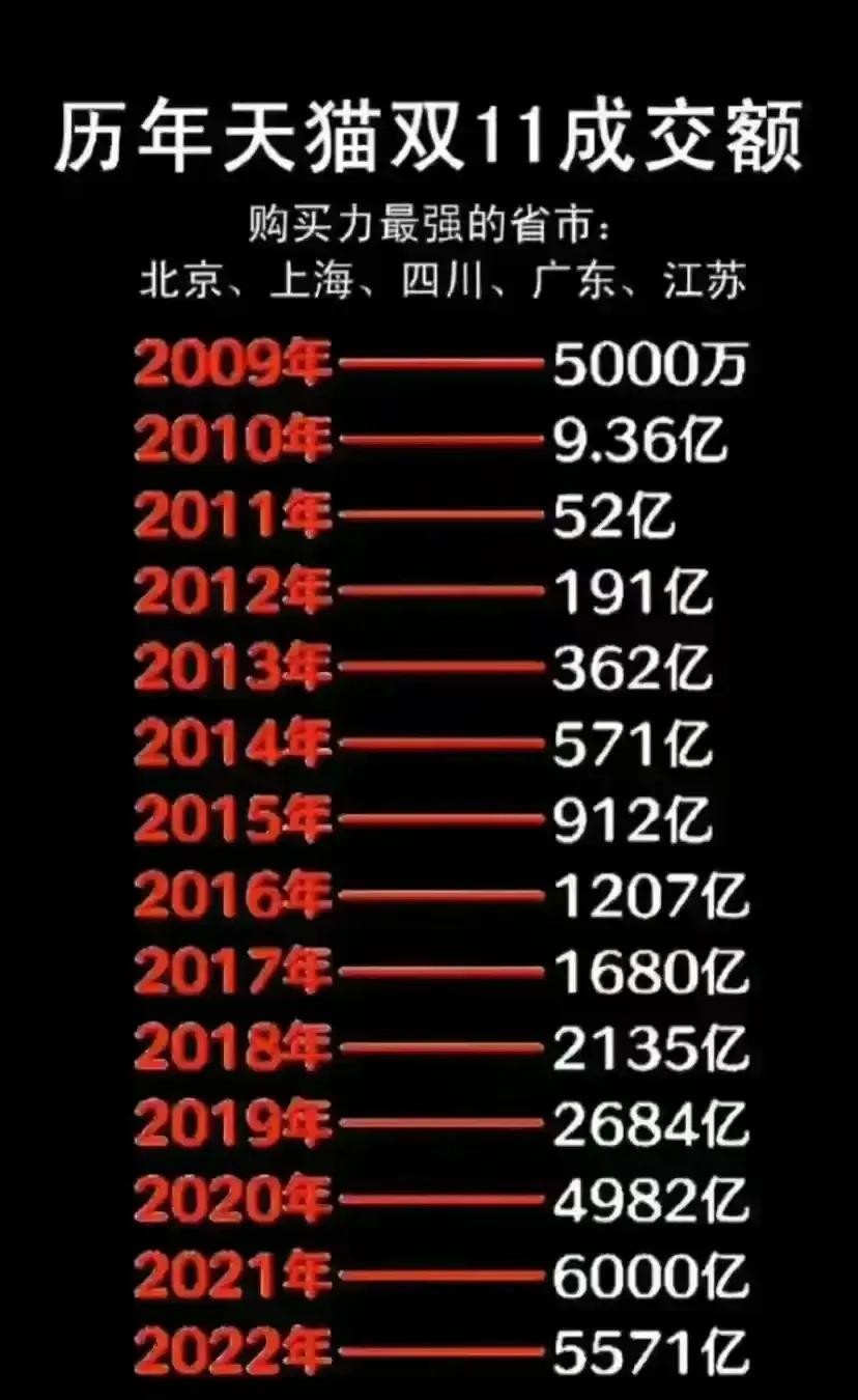 看天猫之前历年双十一的成交额,除2022年略有下降外,其余每年都稳步上升。能否理解为当年恰好口罩事件,部份购买力恰好在恢复体力,所以当年购买力有所下降。