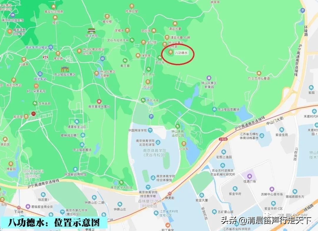 八功德水,位于南京城东中山门外的钟山南麓灵谷景区内。