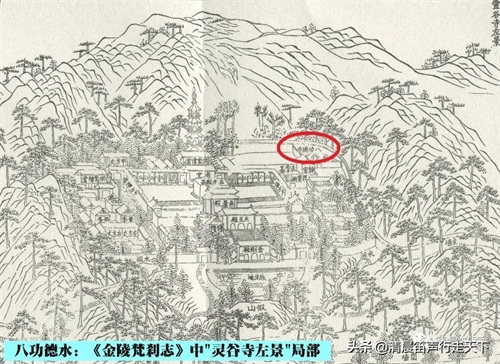 明代《金陵梵刹志》中所附《灵谷寺左景》、《灵谷禅林志》中的《灵谷寺图》等,都标注有“八功德水”在灵谷寺附近的位置。