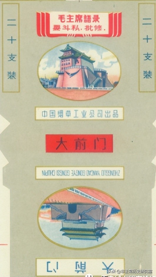 1952年,随着三大改造的开展,大前门商标成为国有的商标,要知道建国后很多旧的香烟品牌都不能使用和生产了,只有大前门这个牌子得以保留,即便是后来精简和筛选烟标,大前门这个牌字依旧得以保存,足以见得这款香烟的地位和生命力,当时生产大前门香烟的有上海、青岛和天津三家烟厂共同生产,当然在1962年之前,还有其他一些烟厂生产过大前门。