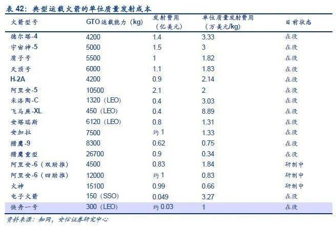 安信证券对SpaceX发射成本的测算