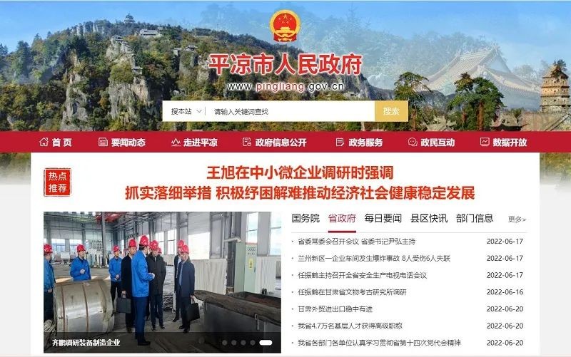 平凉市人民政府网站新版上线运行