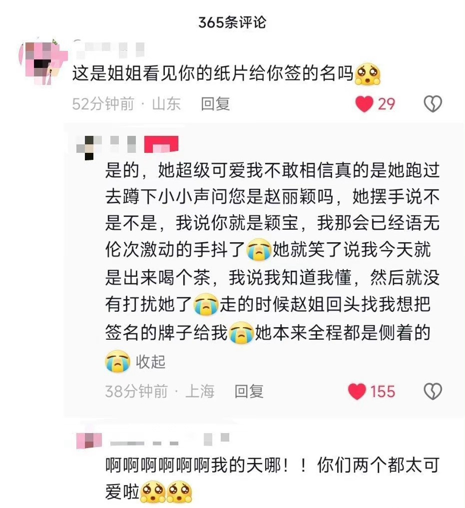 赵丽颖喝茶被网友偶遇,主动送签名贴,双向奔赴太暖心
