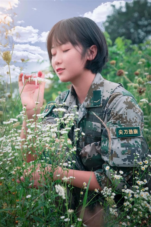 穿军装的小姐姐,拍了组写真