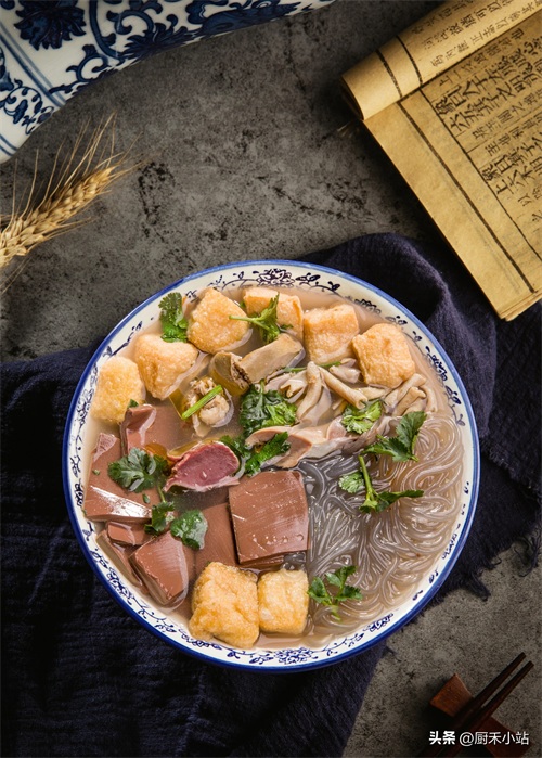 关于鸭血粉丝汤有一个传说,清末秀才梅茗科考失利后,在镇江开设了“鸭先知”,所售卖的鸭血粉丝汤香飘百里,引得无数食客踏破门槛,其中就有《申报》主编蒋芷湘先生。他品尝完鸭血粉丝汤后,题诗赞誉道: