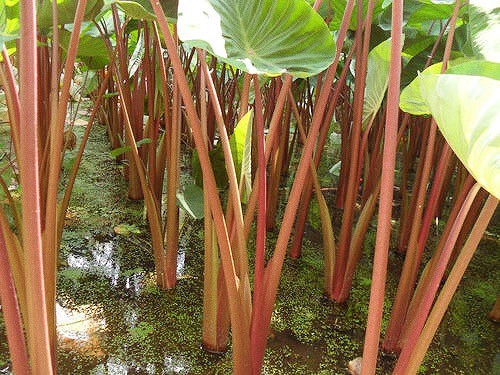 芋荷是多年生块茎植物,常作为一年生的作物进行栽培,其叶片大多数为盾形,叶柄较长,而且比较肥大,一般为绿色或者紫红色。日常生活中所食用的芋头,便是芋荷的果实,芋头一般都是长在水底下,味道清脆爽口,深受大众喜爱。不仅可以作为蔬菜进行食用,还具有一定的药用价值。