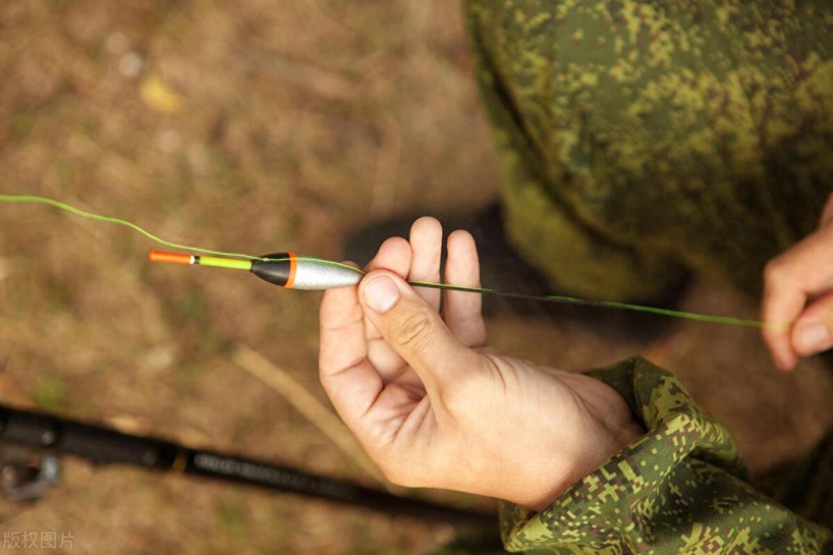 2.铅坠除权:挂上合适的铅坠,投入水中,铅坠除权后的浮漂应保持一定的高度,这个高度称为“漂高”。