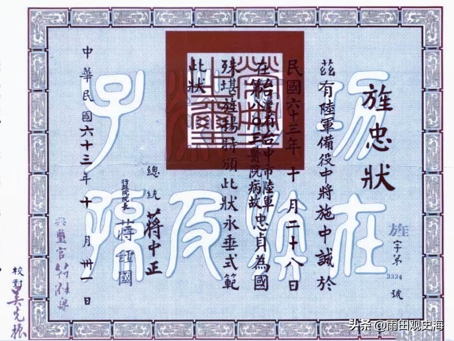 晚年施中诚去世后,老蒋依然给予他称号