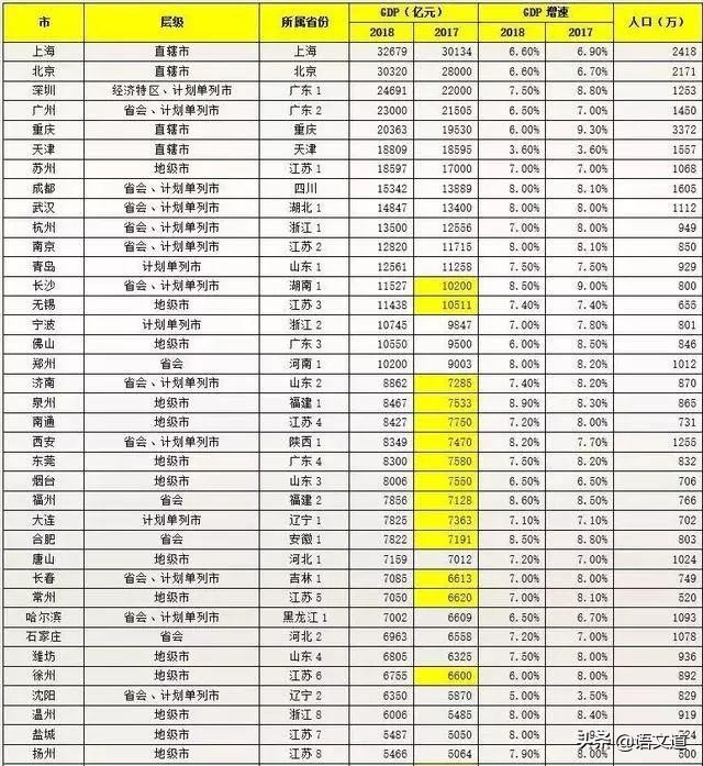 中国GDP百强城市榜以及人口数量(2018年数据)