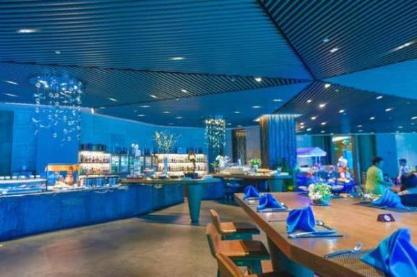 大部分的海洋餐厅都只能看到一些海鲜生物,而且海洋生物种类还比较少,基本上没有什么特色。但是在天房洲际度假酒店的海洋餐厅它们增加了美人鱼的现场潜水表演。