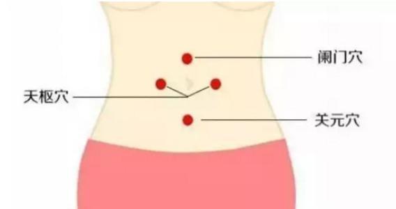 在阑门穴的下方、肚脐的两侧各两指宽处,还有两个天枢穴。如果配合天枢穴一起按揉,对于便秘的治疗作用就更强了。