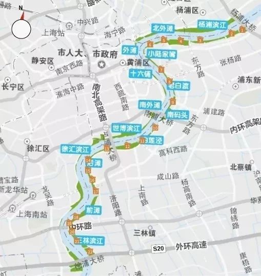 东岸滨江公共空间于2017年底贯通开放。2018年,黄浦江东岸22座望江驿建成开放,形成了一公里一座的东岸滨江公共服务体系。