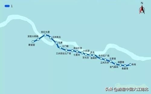 兰州轨道交通1号线西起西固区陈官营站,途经安宁区、七里河区,东至城关区东岗站,东西横贯兰州市中心城区,是兰州市从东向西的主干轨道交通线路。
