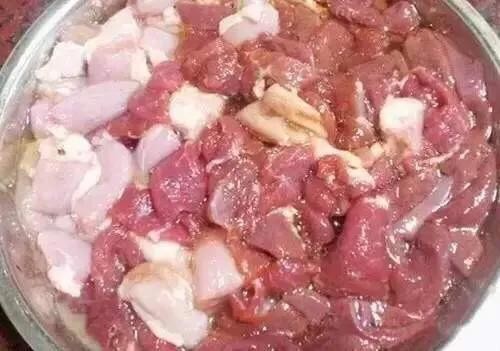 切好用生粉,花生油,(最好再加点姜丝,旧时的猪肉是不用姜的),拌好放置30分钟入味。