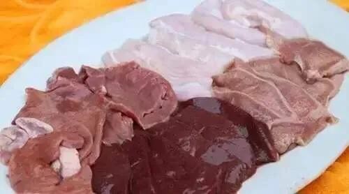 选猪心、猪肝、猪肺、猪舌、猪腰、粉肠、隔山衣(猪隔膜)、前朝肉。