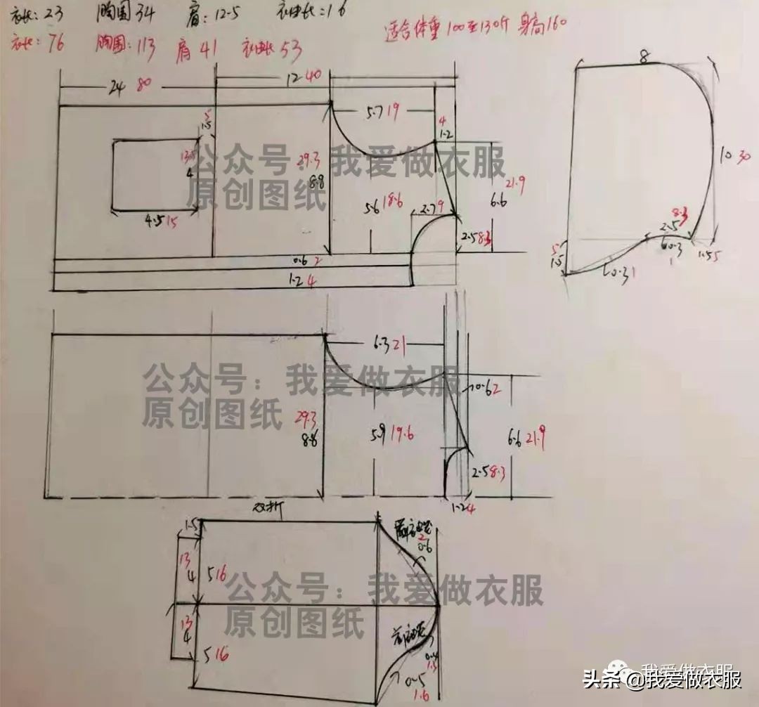今天我们和大家分享的韩版休闲宽松中长款上衣裁剪图,喜欢这类风格的同学可以做起来了,此款裁剪图已加放了缝头不需要加放缝头了,裁剪图还是以平时的市寸的单位和CM单位来画的图,在裁剪图中黑色是市寸数据,红色为CM的数据,满足不同的学友需要,有些同学说他们看不懂市寸的单位,其实你们只要和软尺进行对照就很容易的得出数据,我们用的是市寸不是英寸,大家不要搞错了。