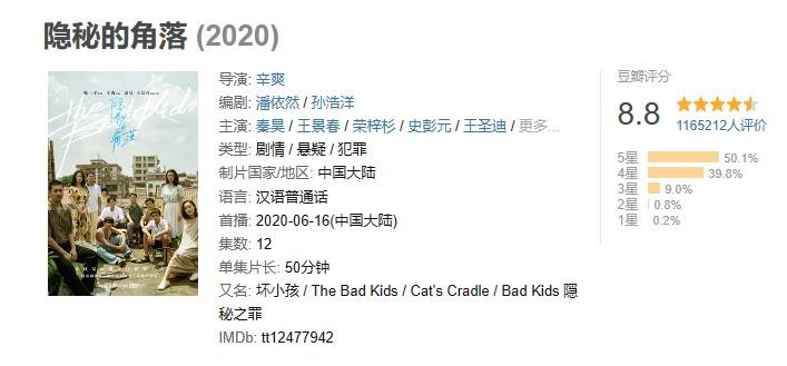 《隐秘的角落》,116万人在豆瓣打出8.8的高分,并在当年带火了“一起爬山”这一神梗。