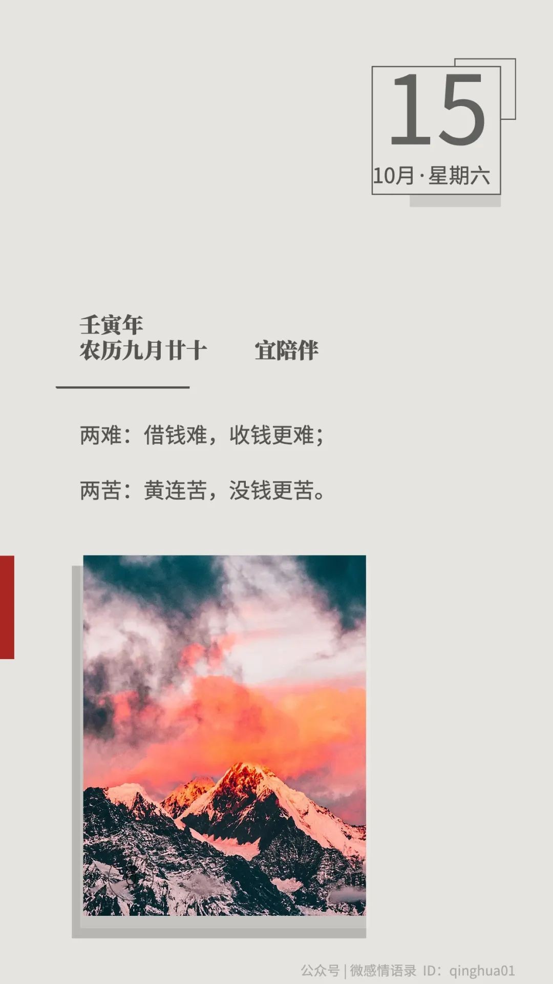 两难:借钱难,收钱更难;两苦:黄连苦,没钱更苦。