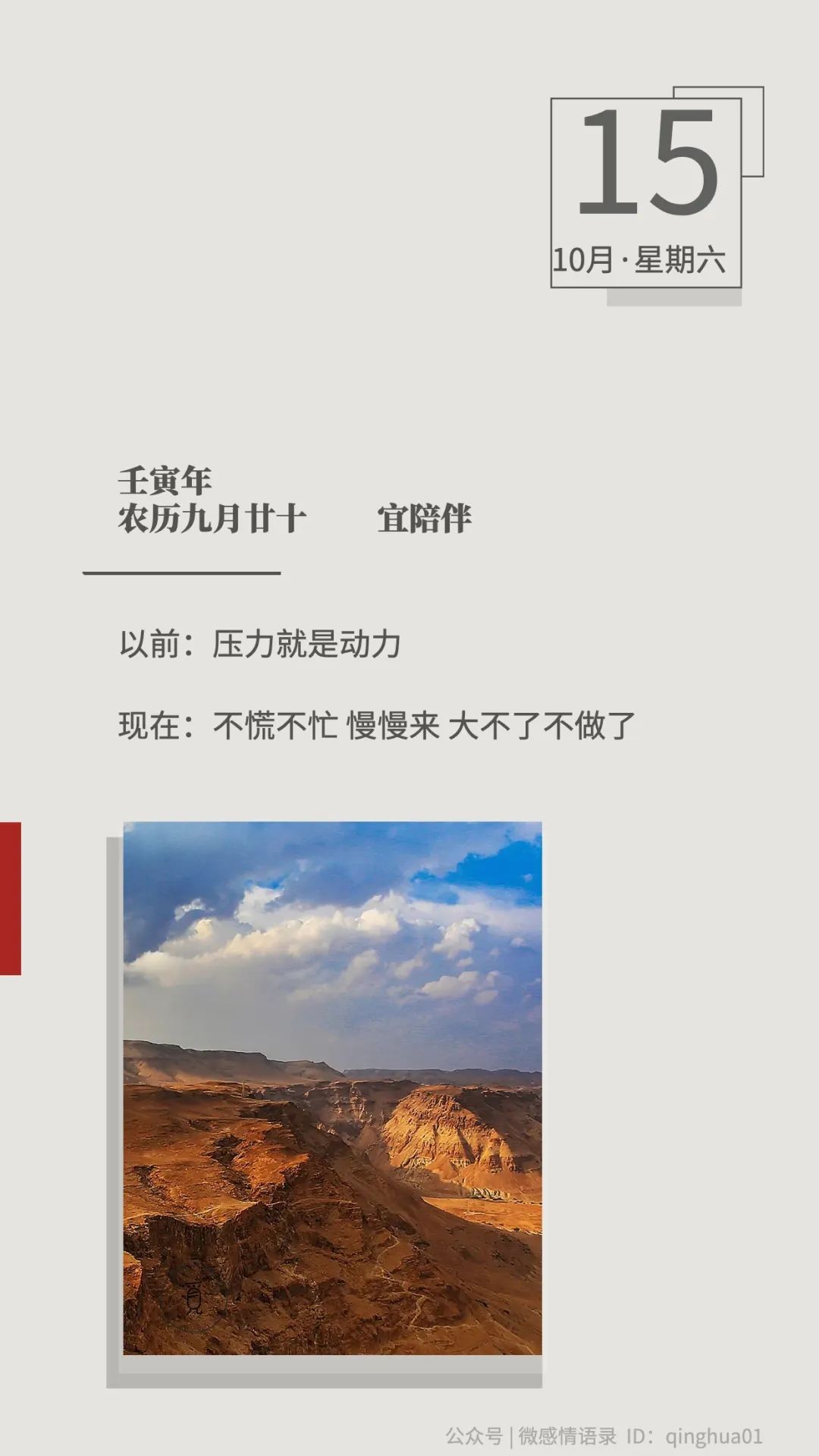 以前:压力就是动力 现在:不慌不忙 慢慢来 大不了不做了