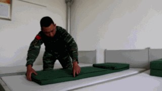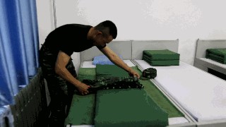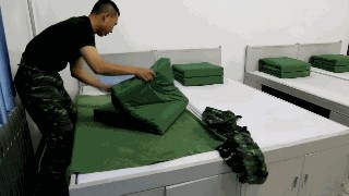 叠被子可是个大工程,不过,对于技术熟练的兵哥哥来说,分分钟叠好一个“豆腐块”。
