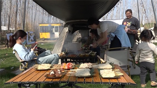 连日来,邓城的露营烧烤刷屏朋友圈,户外游迎来了高光时刻。记者在沙河杨树林一露营基地看到,草坪上支撑起了一顶顶帐篷,现场有露营桌、露营椅、露营烧烤架,装备十分齐全。不少游客一边吃着烧烤,一边聊着天,看起来十分惬意。据露营地负责人介绍,天气回暖后,人流量激增,尤其是周末,能达到600余人,要提前预约才有位置。