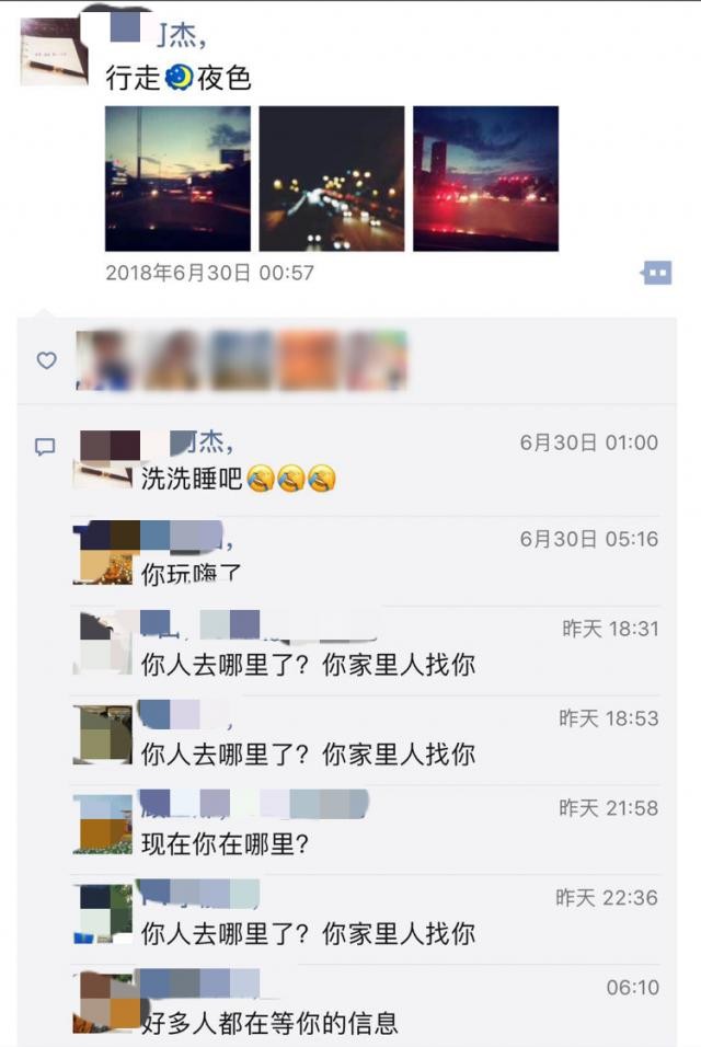 事情发生在6月30日晚上,当晚小杰突然发了一条微信朋友圈——几张夜景图并配文“行走夜色”!