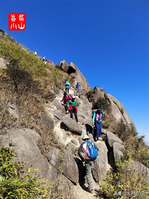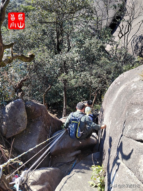 从大门口买票,建议车继续向上开,开到台阶路起始点停车场,然后溯溪爬到一线天。从一线天后面小路一直攀爬即可登顶。攀爬线路非常成熟,人很多,除了体力和补给,无须任何顾虑。