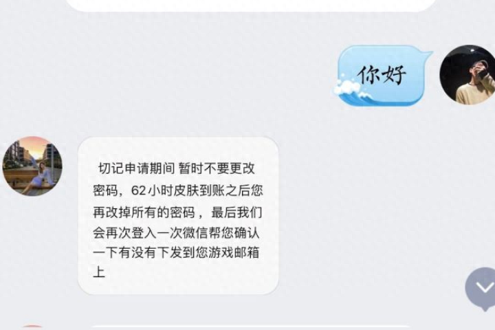 这个骗术的目的其实并不是骗钱,他们就是打着免费领皮肤的幌子来盗取你账号的相关信息,比如QQ和微信号,然后就会告诉你需要等待几天皮肤才会发送到你账号上,然后你再把密码改掉就行。其实骗子就是要利用这几天来申请解除你账号的各种绑定变成自己的账号,等你到时间再登陆账号就登不上了。所以大家千万不要相信免费送皮肤这种骗局,天下没有免费的午餐,更何况还是白来块钱的皮肤,谁会免费送给你?其实你要识破他们的骗局也很简单,你直接和他说你想要牛魔的遇见神牛皮肤,他保证也会说没有问题一定给你发放。因为他们根本不懂这些皮肤。