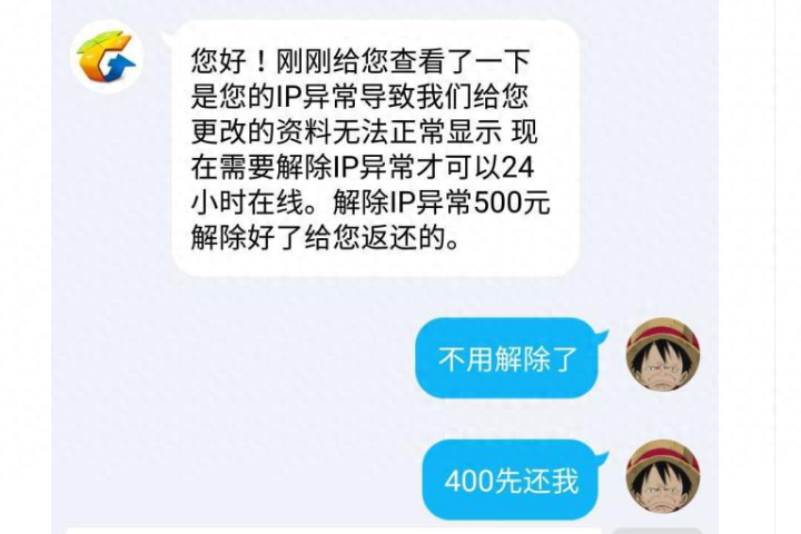 首先他会告诉你一个你比较能接受的价格,比如50块解除防沉迷。如果你付了钱,他就会再编一个关于账号安全之类的理由再让你给他更多的钱,并且承诺这个钱只要解除后就能返还,这个时候心情迫切的你很容易相信他就会继续被骗。如果你已经反映过来他是骗子,那么你还是被骗了之前的50块。