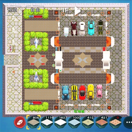 一楼部分,留出中央主通道,两侧全部用来停车,梨梨的案例里面停了10部车,间隔距离比较顺眼。其实这里我不仅仅用来做车库,也充当仓库使用,放入各自的绑定物品,开共享也是ok的,这样即便是混战服,一楼也可以做成敞开式的,这么多滴车车,还怕没地方躲嘛~