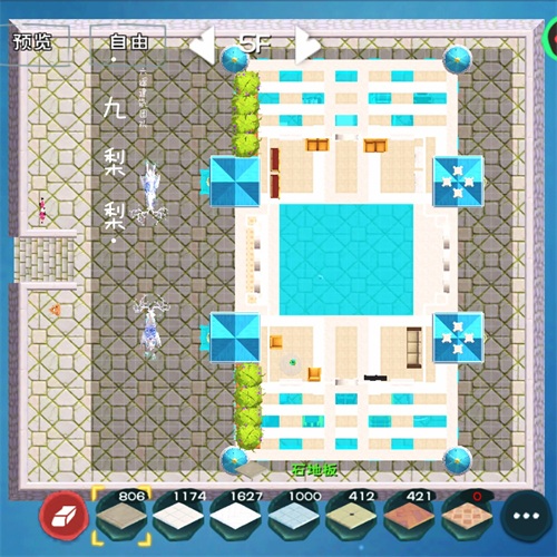 四楼中间有公共的造车区域,可以联合五楼的开放空间作为私人储物区,或者摆放各种家具组成谈笑风生区,如果是和平服的话,保留六楼镂空地板,模拟吊顶,增加采光性,顺便能够上天台,直接出门方便无比。若是混战服,可以选择封闭地板,毕竟安全与便利总有取舍。