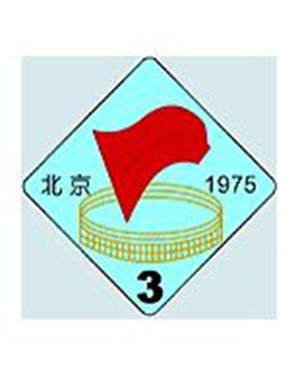 第三届 1975年举办于北京。圆形的体育场,象征团结的中国人民,旗帜代表毛泽东思想,马列主义的红旗。