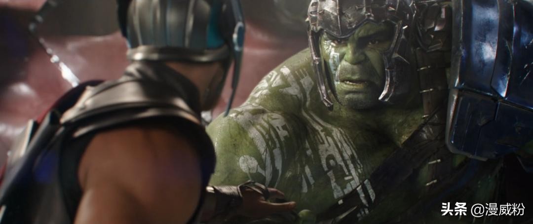 在绿巨人伸出手掌的时候,雷神偏偏来了一个猥琐的笑容……