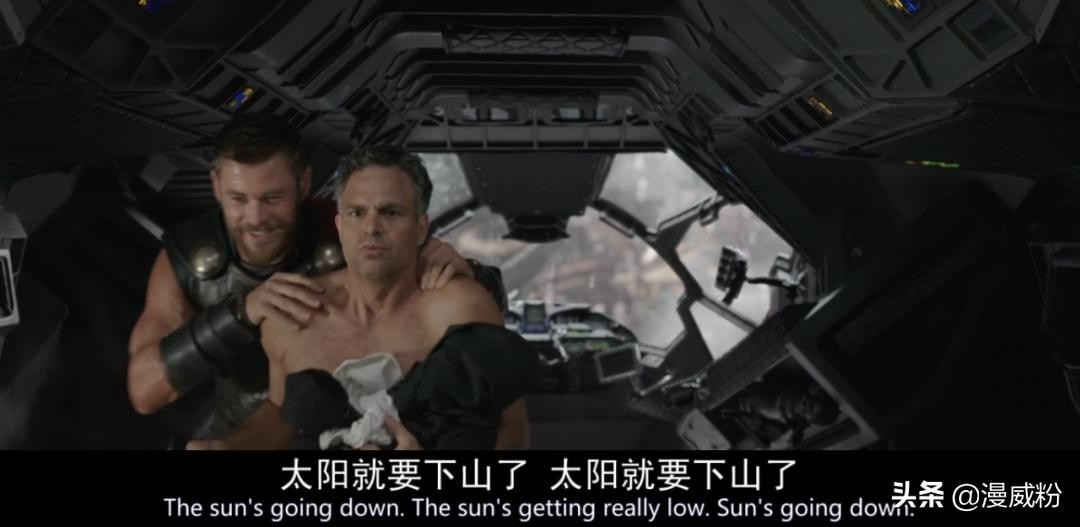 还有就是在班纳慌张的时候,雷神巴拉巴拉的重复“太阳就要下山了”。