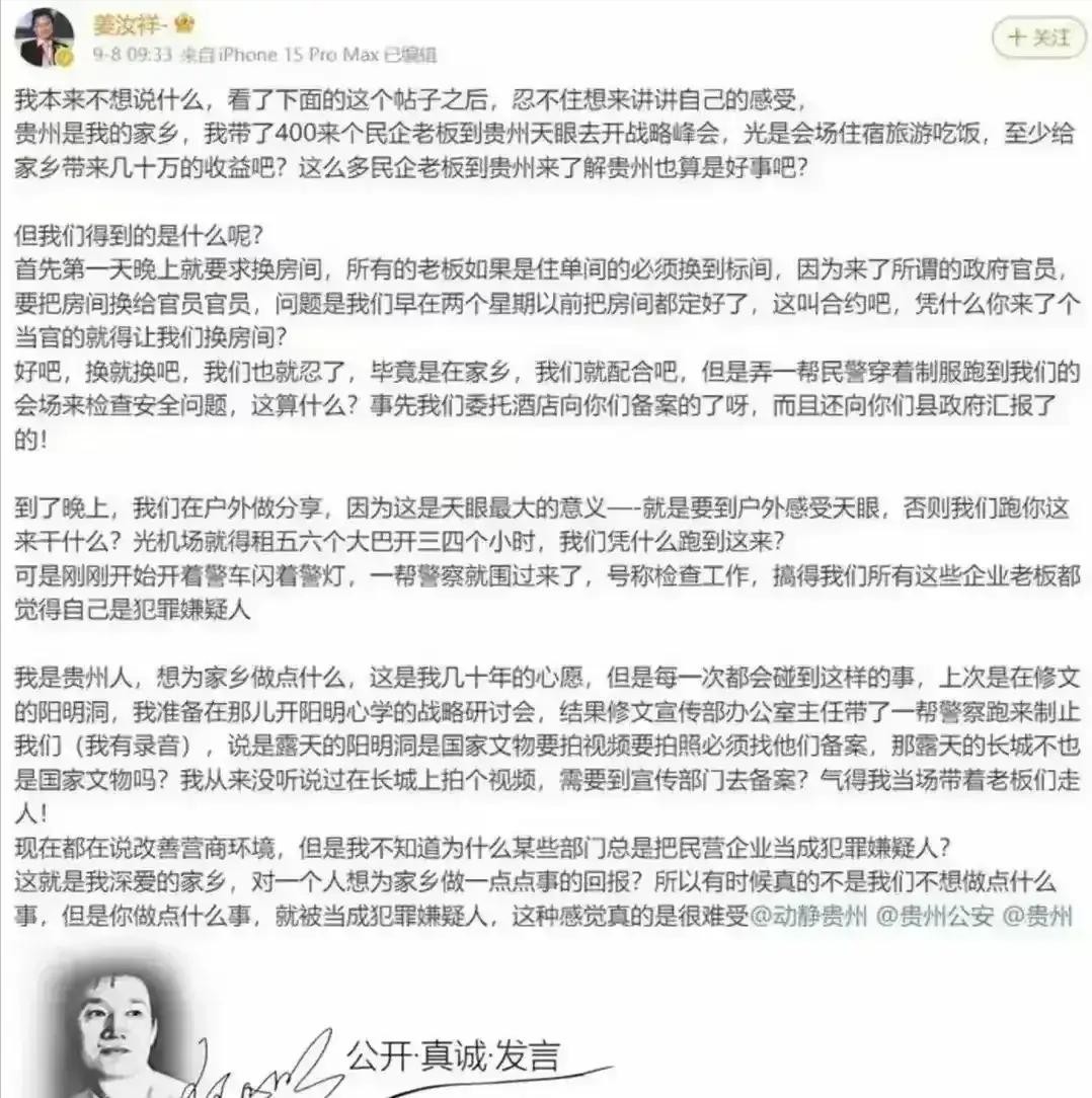 事件的导火索是锡恩集团董事长姜汝祥带领400多位企业家前往“天眼”景区。
