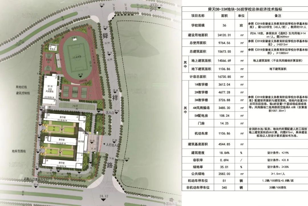 安庆市北部新城DB-33号地块--学校位于安庆北部新城。地块西侧均为住宅用地,东侧临近舜祥路,南侧为龙城路,北侧为舜清路。