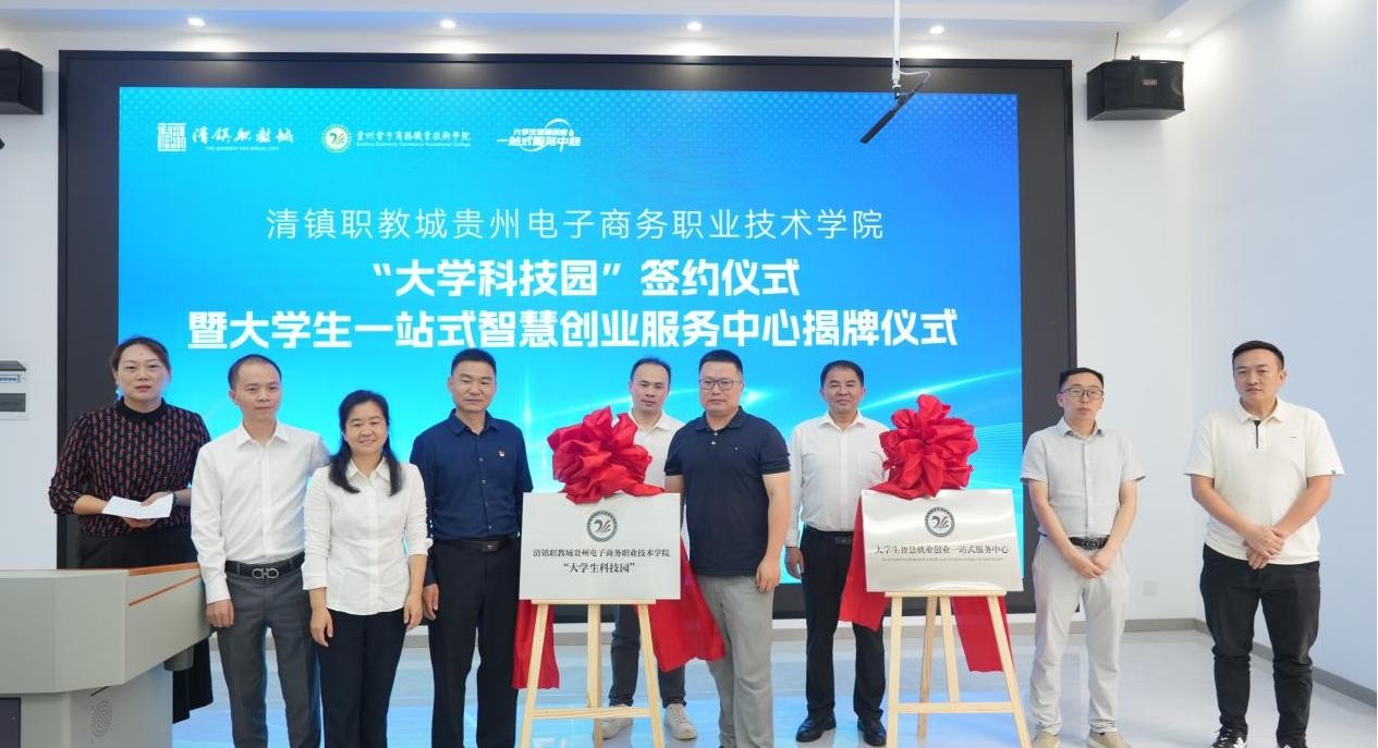 7月1日,清镇职教城管理委员会与贵州电子商务职业技术学院合作共建的“大学科技园”和大学生一站式智慧创业服务中心,在该校省级“双创”示范基地正式签约并揭牌成立,旨在深化产教融合,推动创新创业协同发展。