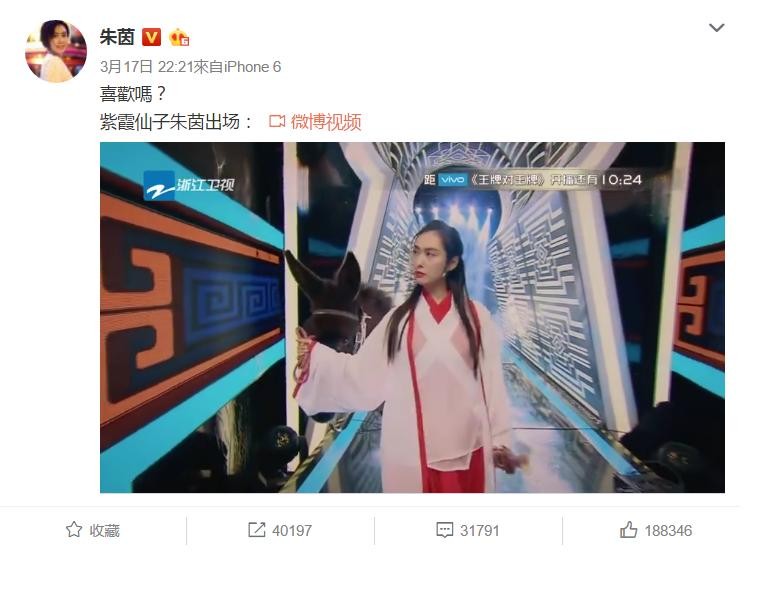 朱茵日前受邀上《王牌对王牌》,重扮《大话西游》裡的经典「紫霞仙子」一角,出场时候那股神韵、气势与容貌都与1995年的紫霞仙子一样,震慑了许多人。