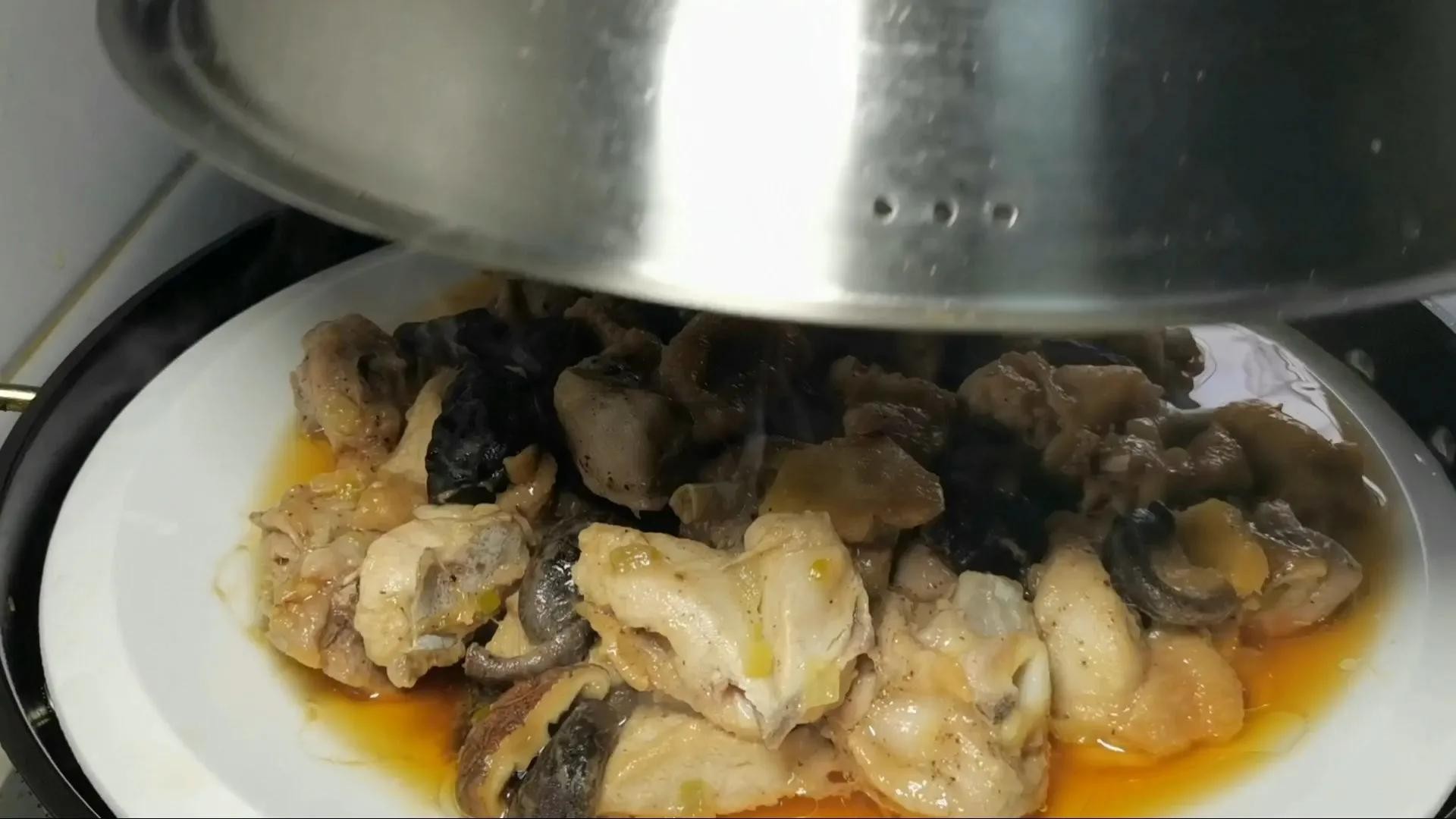 5:将香菇和鸡块拌匀,放入锅中,水开后大火蒸20分钟。一定要水开后再放入鸡块,这样鸡肉的水份才不会流失。