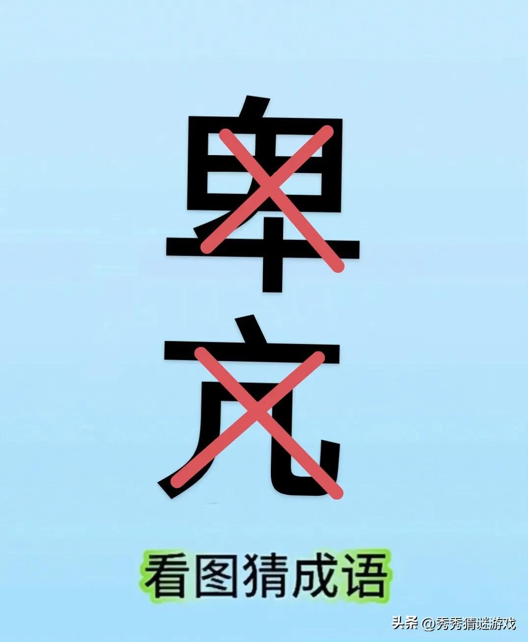 四、看图猜成语,图中有卑和亢两个字,但都被画上了红叉叉,成语的意思是:既不自卑也不高傲。形容待人的态度和言行恰如其分,自然得体。也形容人说话办事有恰当的分寸。