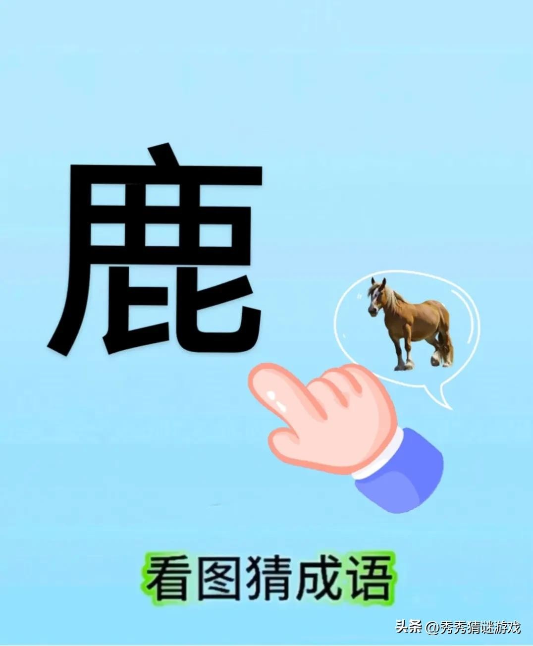 七、看图猜成语,图中有一只手指着一个鹿字,嘴巴里面却说着这是马,成语的意思是:比喻故意颠倒黑白、混淆是非