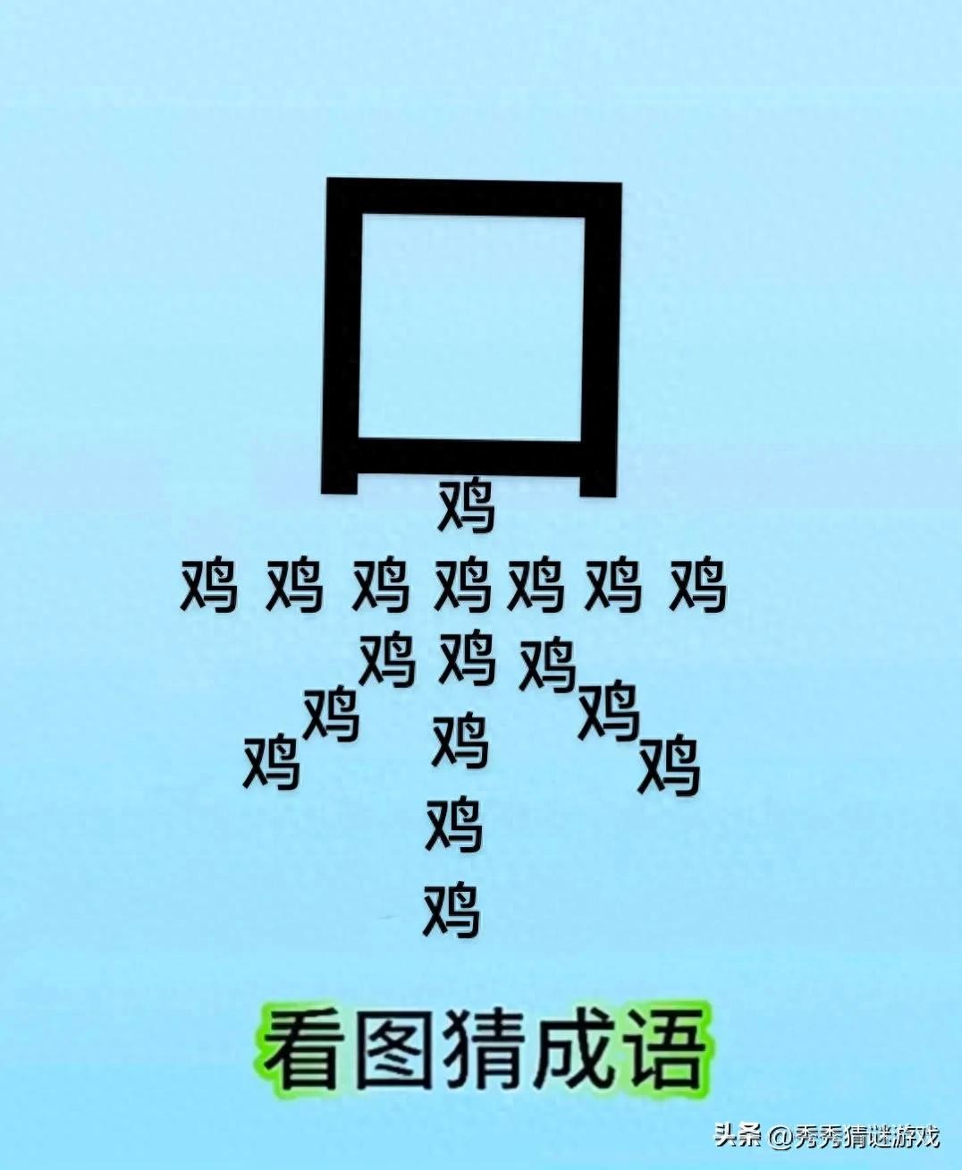 一、看图猜成语,图中有一个呆字,呆下面的木字是由很多个鸡字组成,意思是:呆得象木头鸡一样。形容因恐惧或惊异而发愣的样子。