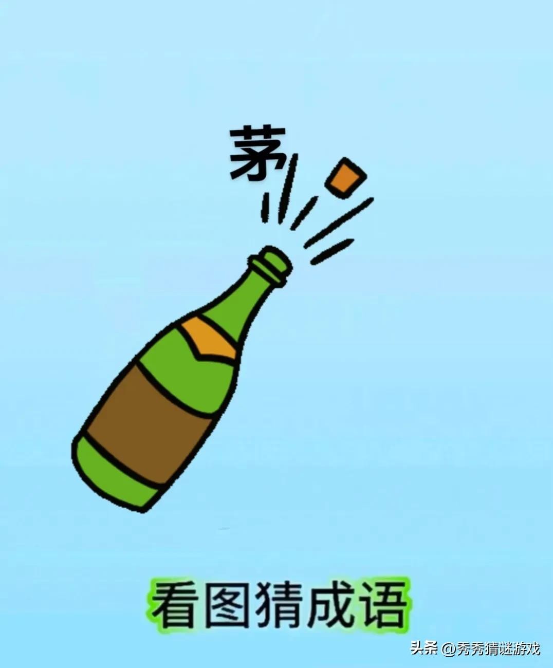八、看图猜成语,图中有一个瓶塞被打开,旁边还有一个茅字。成语的意思是:原来心里好像有茅草堵塞着,现在忽然被打开了。形容思想忽然开窍,立刻明白了某个道理。比喻豁然领悟、明白了。