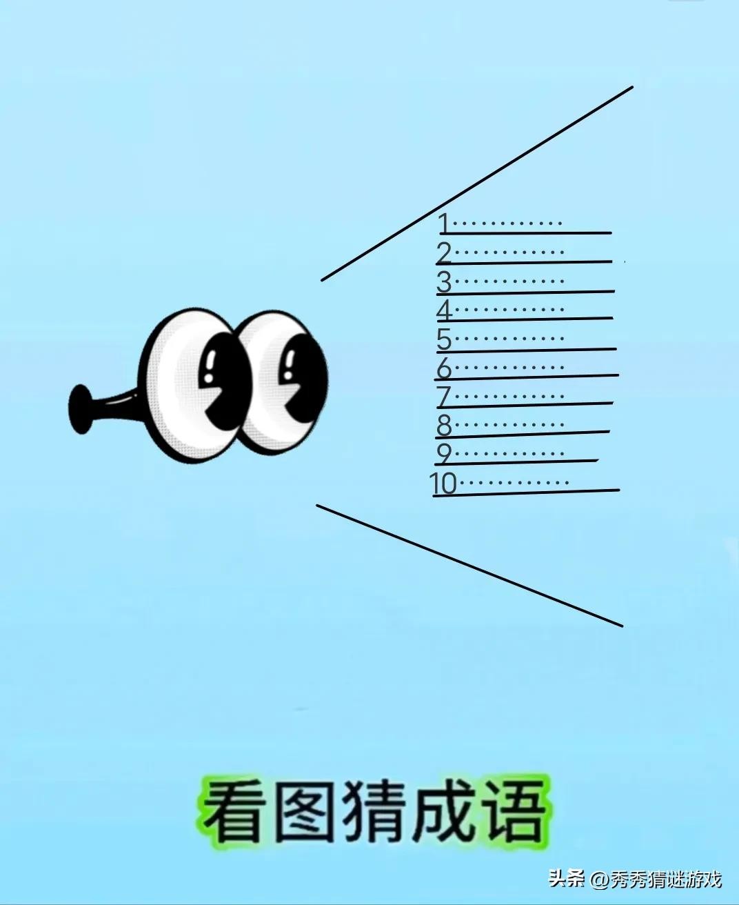 二、看图猜成语,图中有一只眼睛,一眼看过去就可以看十行字,意思是形容阅读速度很快。也形容看文章马马虎虎,不仔细。